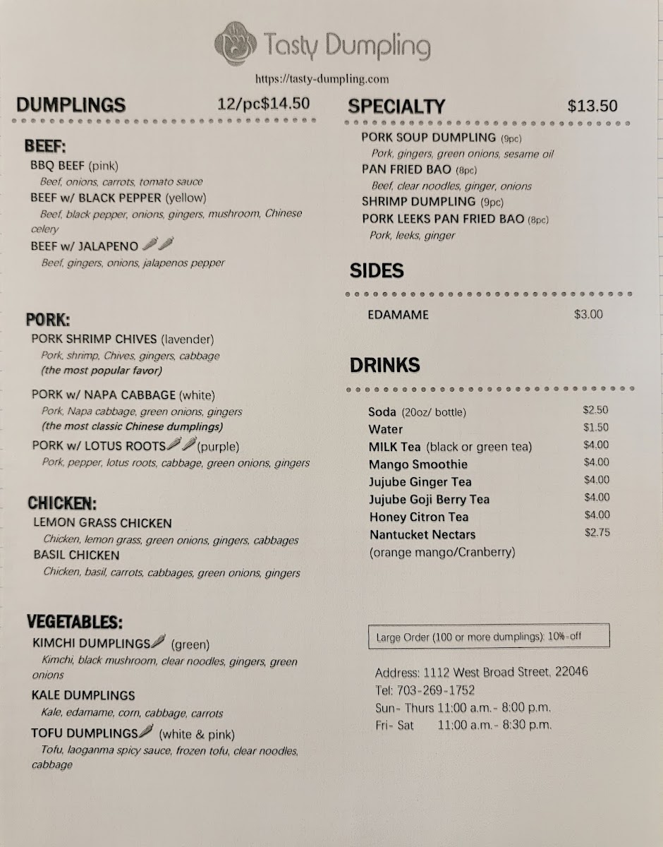 Welcome to Tasty Dumpling Falls Church, a hidden gem located at 1112 W Broad St, Falls Church, VA. This restaurant is celebrated for its homemade dumplings that go beyond the ordinary. With a diverse menu featuring options like lemongrass chicken, mixed veggies, and fried pork buns, there's something for everyone.